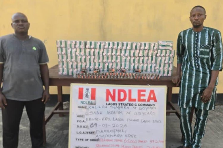 In one of the interdiction operations, NDLEA operatives arrested Kalilou Simpara and Saidu Ibrahim at Ebute Ero on Monday, March 9, after discovering 68,000 pills of tramadol (250mg and 225mg) already loaded in a truck.