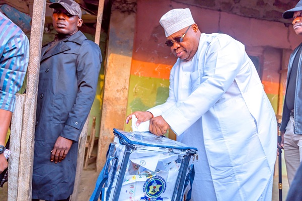 The News Agency of Nigeria (NAN) reports that the governor arrived at the polling unit in company of his supporters and some members of the Peoples Democratic Party(PDP).