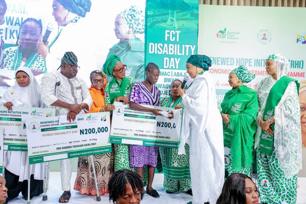 Nigerian First Lady, Senator Oluremi Tinubu making the 200,000 naira per beneficiary distribution in the FCT for 250 persons with disabilities, noted that our nation grows stronger when every individual is empowered to contribute meaningful.