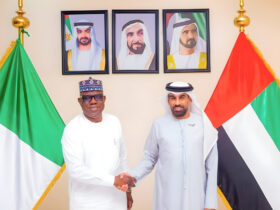 The governor was accompanied by the member House of Assembly representing Abadam State Constituency, Commissioner for Information and Internal Security, Professor Usman Tar, Commissioner for Local Government and Emirate Affairs, Honourable Sugun Mai Mele and the Director General Borno State Emergency Management Agency.